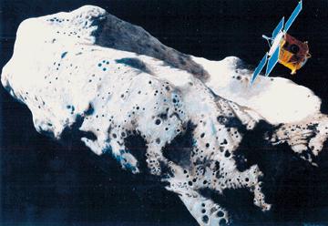 The NEAR mission was successfully launched 1996 Feb 17, and explored several asteroids over the following four years. It became the first spacecraft to orbit an asteroid when it arrived at Eros in 1999, and was the first spacecraft to land on an asteroid. Johns Hopkins built it, and NASA's NSSDC has another page on it. NEAR took the picture at the left below. The other two asteroids were photographed by the Galileo spacecraft.